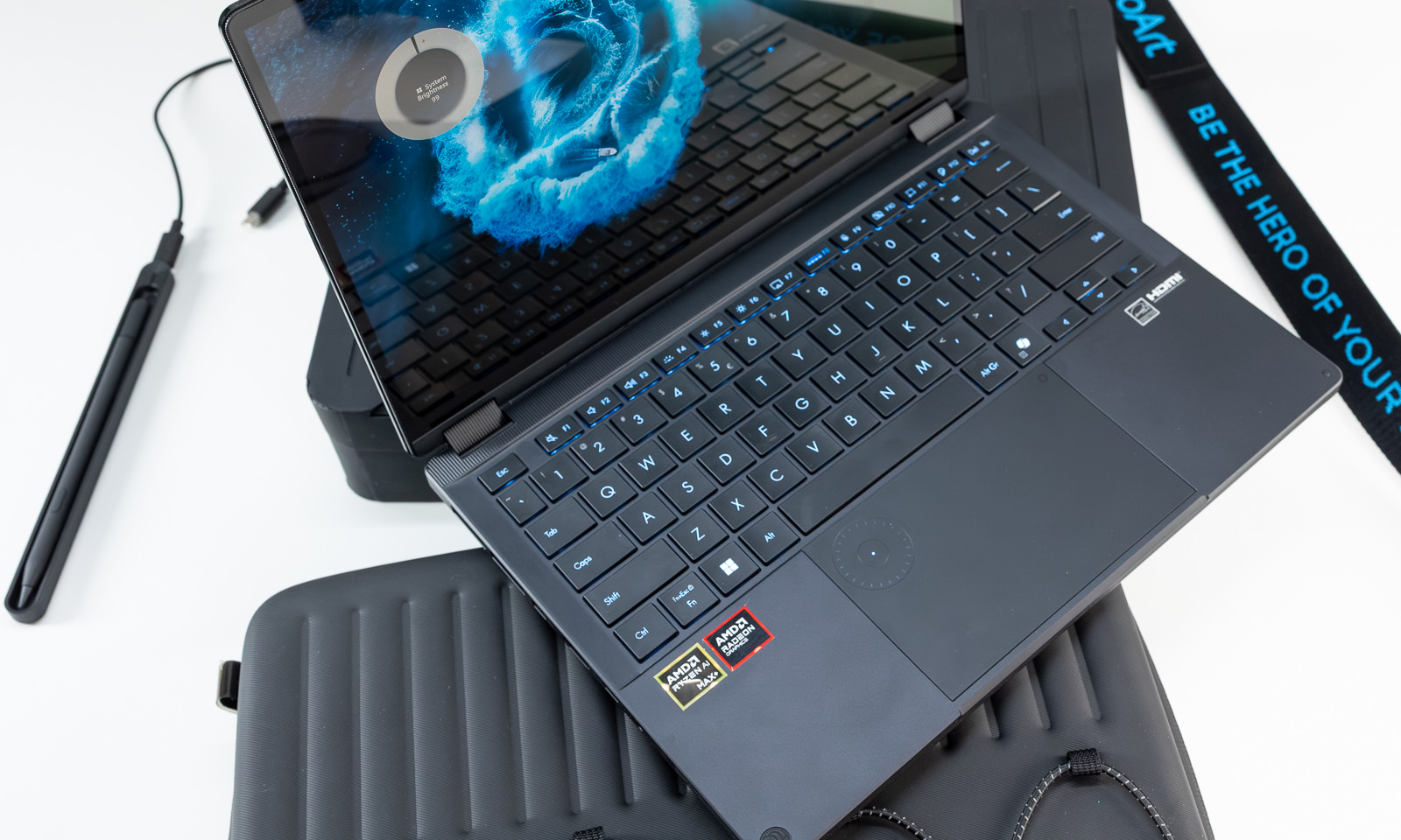 Iluminarea din spate a tastaturii și indicatorul DialPad au o nuanță albastră care se potrivește perfect cu culoarea albastru cyan, specifică mărcii GoPro. De asemenea, fiind inspirate de precizia fotografiei profesionale, balamalele au dungi verticale care amintesc de designul camerelor profesionale rezistente și pregătite pentru acțiune.