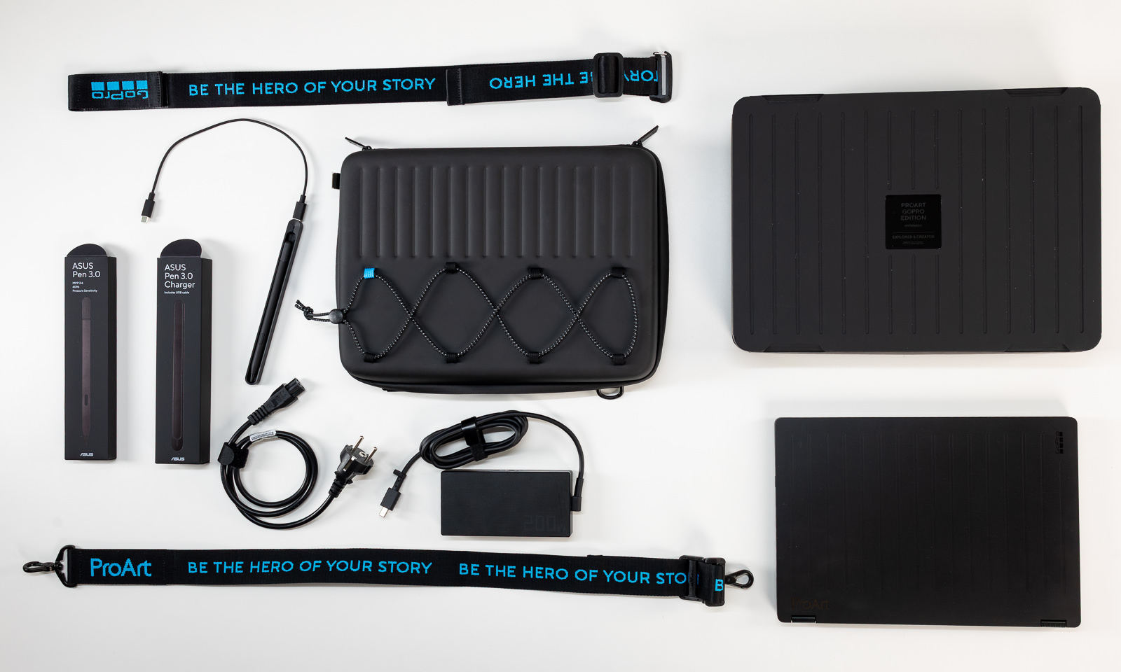 Spre deosebire de varietatea „laptopurilor de grădină”, această ediție este destinată aventurilor, motiv pentru care utilizatorii au nevoie de o protecție mai mare pentru laptopul lor ProArt GoPro Edition. Designerii ASUS au adăugat o husă rigidă inspirată de designul ambalajului GoPro. Carcasa rigidă învelește laptopul pentru a-l proteja de căderi și lovituri atât în timpul aventurilor speciale, cât și în timpul utilizării zilnice. Husa rigidă are, de asemenea, modele frezate CNC care evidențiază sofisticarea și durabilitatea produsului, în timp ce cureaua multifuncțională ține în siguranță o cameră GoPro cu gadgeturi și alte accesorii.